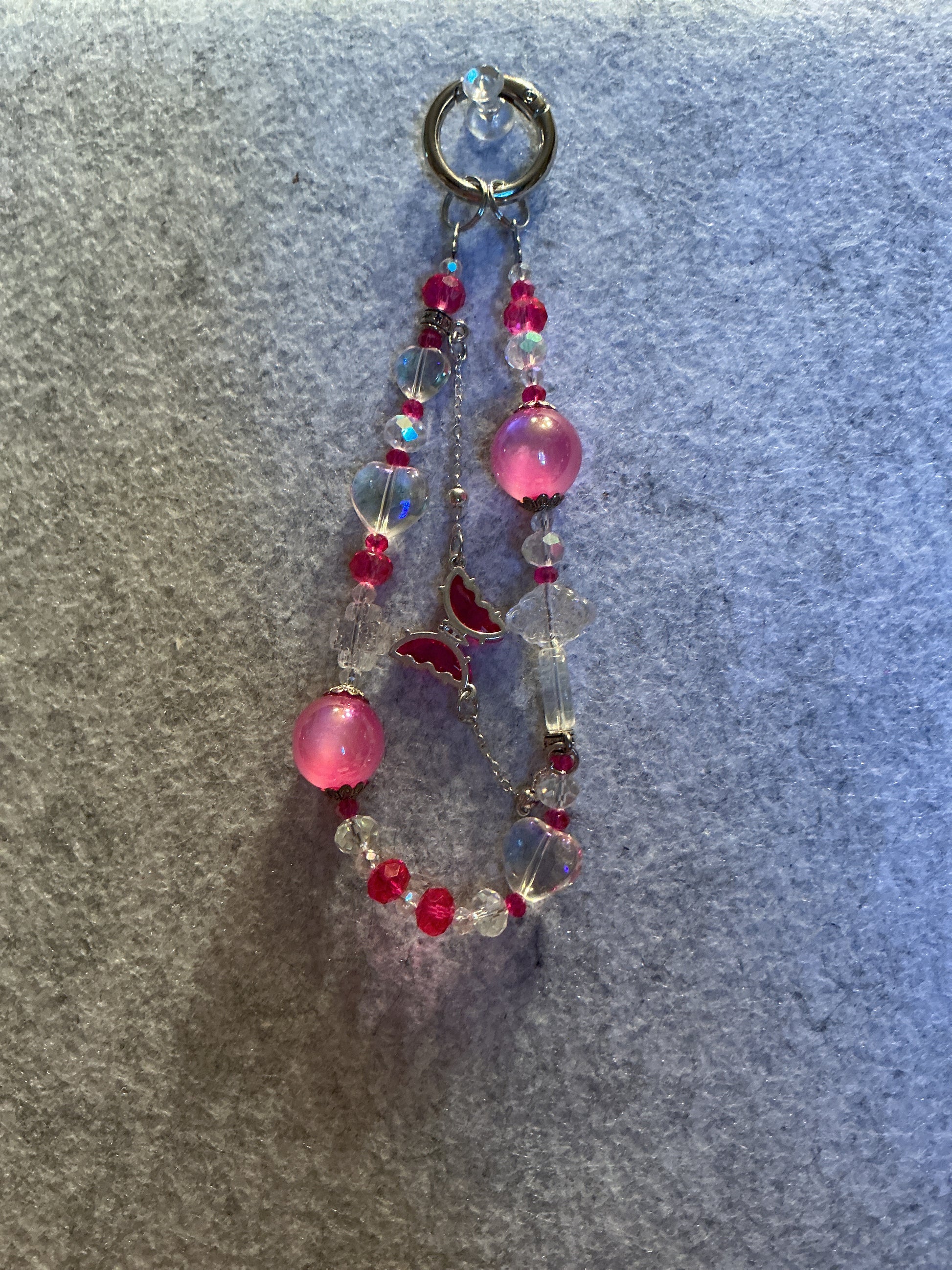 A pink butterfly charm.